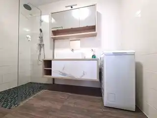 Fliesen, Gas, Fußbodenheizung, Einbauküche, Wohnküche / offene Küche, Dusche, Doppel- / Mehrfachverglasung, Ziegel