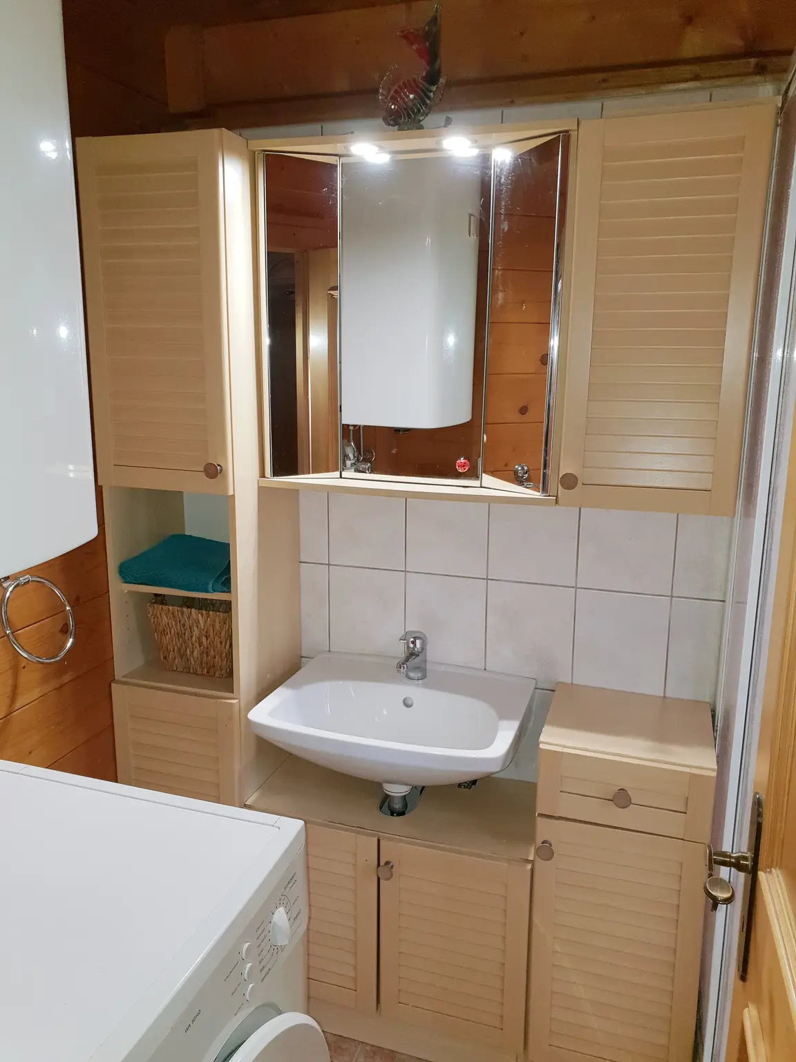 am Waldrand einer Wohnsiedlung. Die Beheizung erfolgt über Elektroheizkörper + einen Schwedenofen