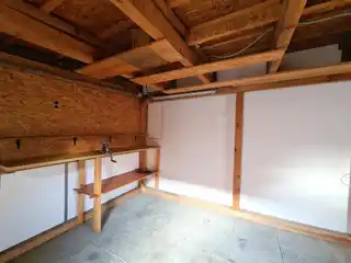Fliesen, Laminat, Elektro, Heizofen, Einbauküche, Wohnküche / offene Küche, Bad mit Fenster, Dusche, Pellets, Gartennutzung, Kunststofffenster, Bad mit WC, Ziegel