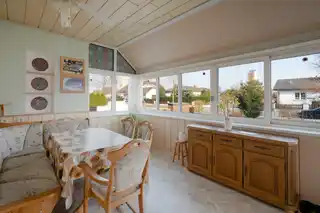Fliesen, Parkett, Öl, Zentralheizung, Einbauküche, Bad mit Fenster, Badewanne, Dusche, Kabel / Satelliten-TV, Garage, Sauna, Wintergarten, Abstellraum, Räume veränderbar, Außenliegender Sonnenschutz, Toilette, Rollladen, Walmdach, Massiv, Doppel- / Mehrfachverglasung, Bad mit WC, Grünblick