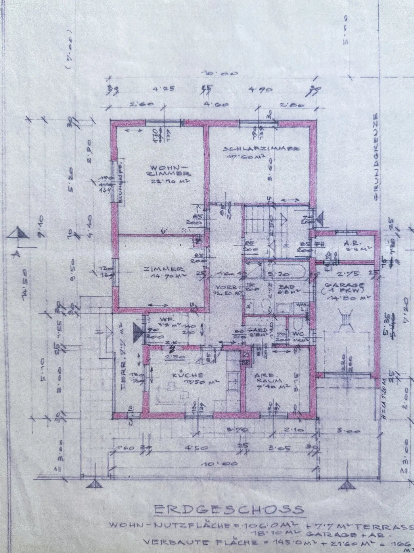 Die Wohnfläche beträgt ca. 125,7 m² und setzt sich aus der im Bestandsplan ausgewiesenen Wohnnutzfläche sowie dem erweiterten Eingangsbereich in Wintergartencharakter zusammen.