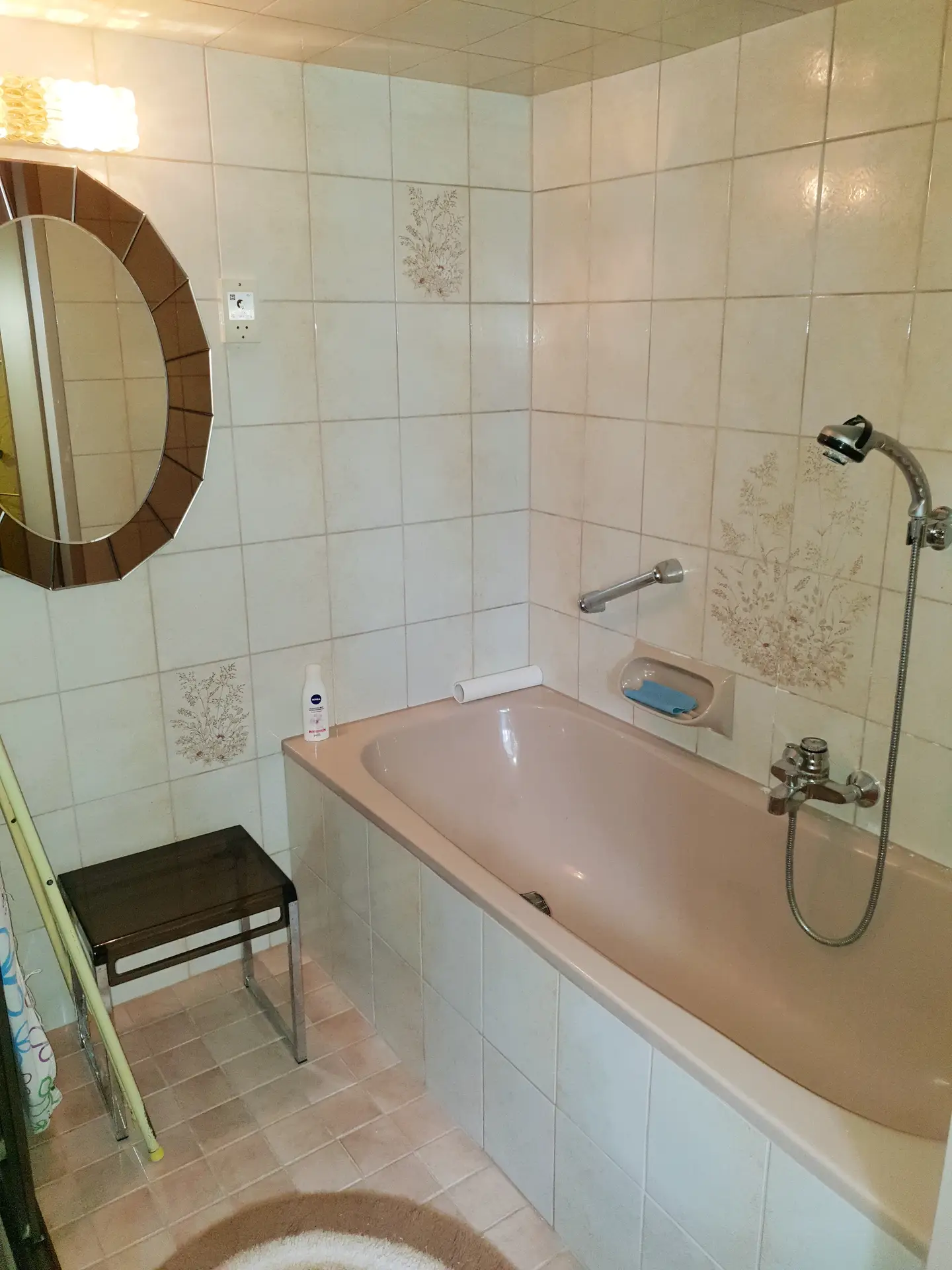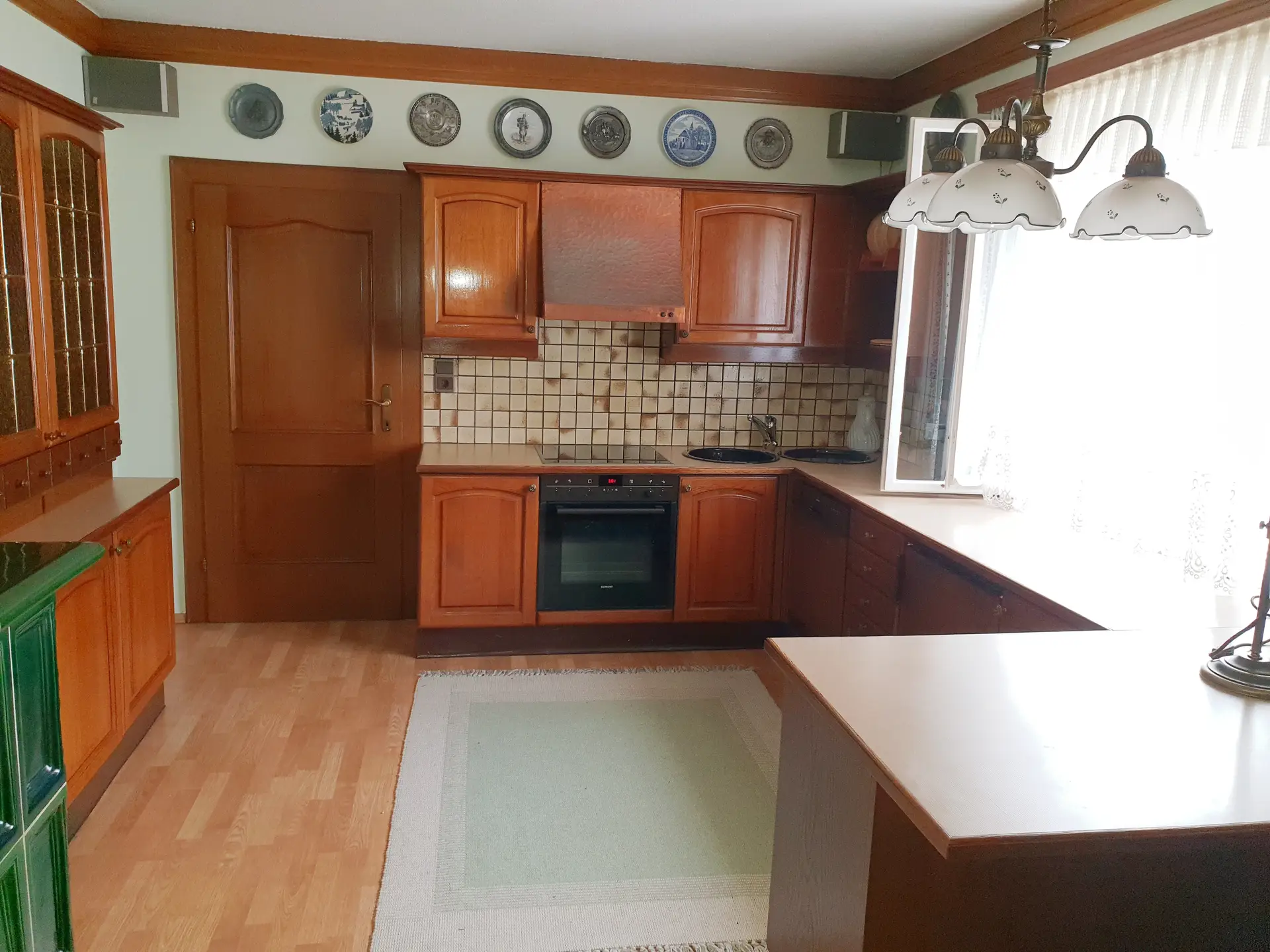 Fliesen, Parkett, Öl, Zentralheizung, Einbauküche, Bad mit Fenster, Badewanne, Dusche, Kabel / Satelliten-TV, Garage, Parkplatz, Holz, Toilette, Rollladen, Satteldach, Doppel- / Mehrfachverglasung, Ziegel