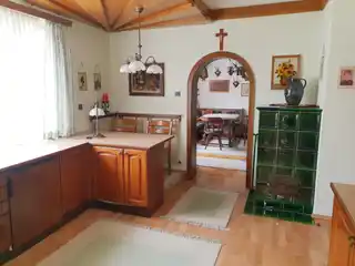erfolgt über eine Ölheizungsanlage der Marke Bösch + einen Kachelofen der sich