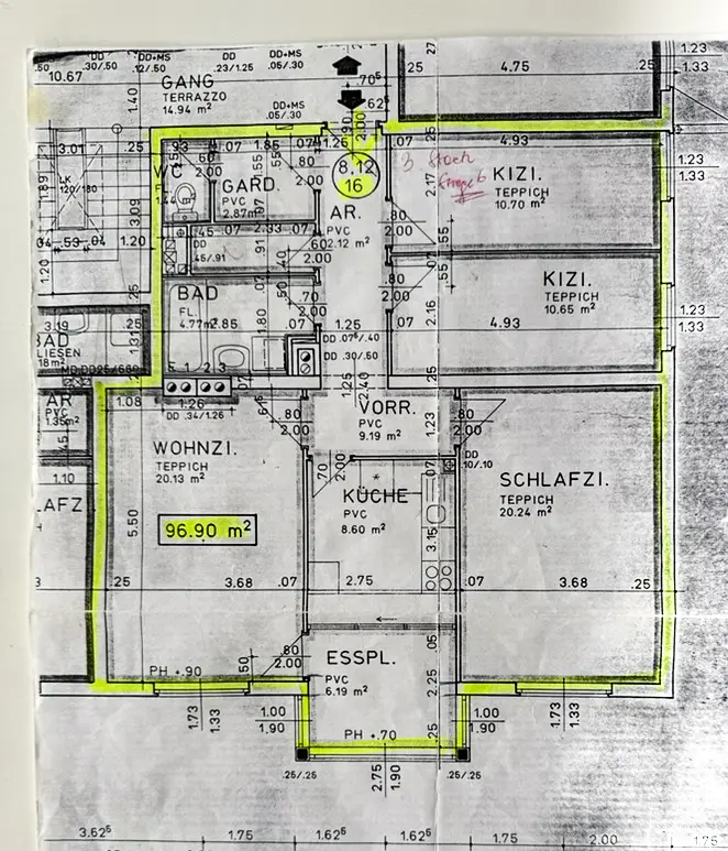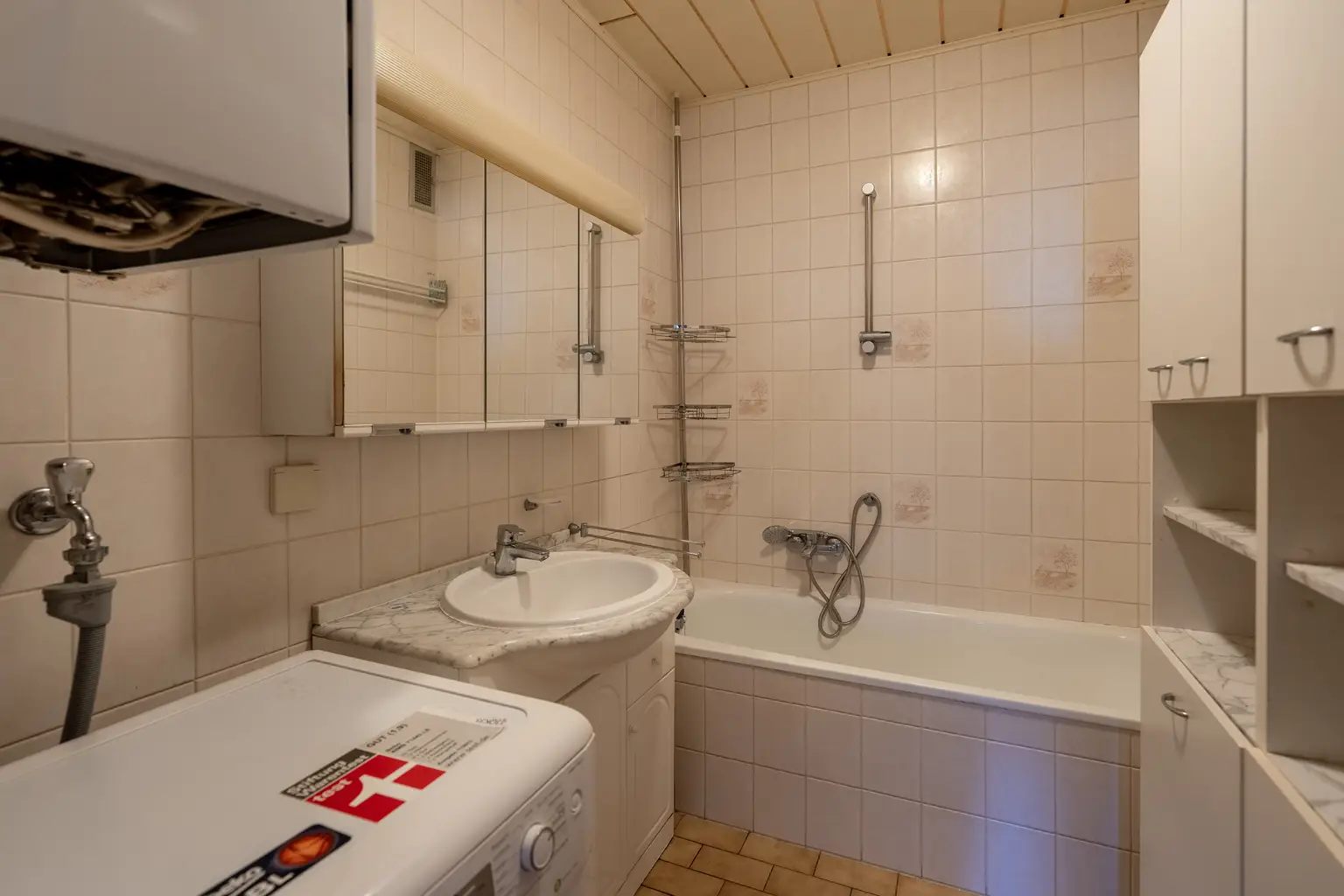Die Wohnung präsentiert sich insgesamt in gepflegtem, jedoch bereits in die Jahre gekommenem Zustand.