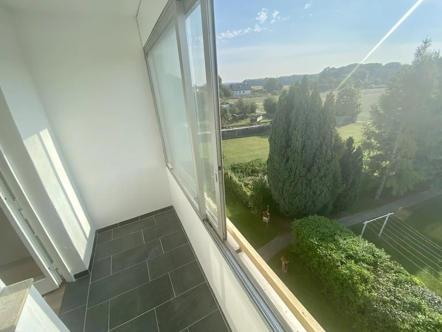 Die Loggia mit einem herrlichen Ostblick lädt dazu ein, den Morgenkaffee im zu genießen und den Tag entspannt zu beginnen. Der angrenzende Garten bietet Ihnen zusätzlichen Raum für Erholung, Freizeitaktivitäten oder einfach zum Entspannen in der Natur.
