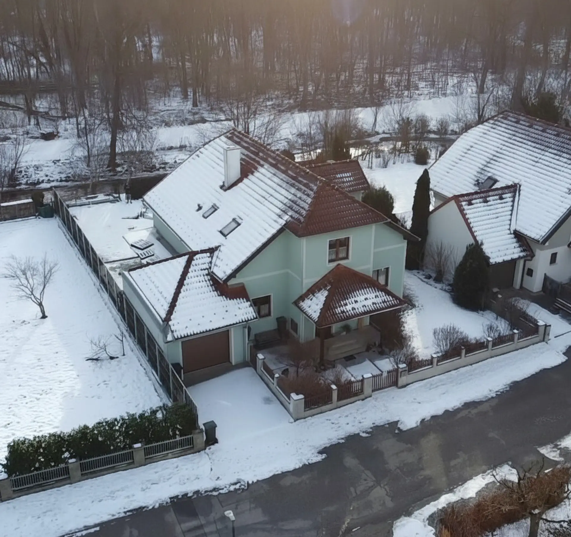 Genießen Sie die erst kürzlich erneuerte Terrasse und das Pool, perfekt für entspannte Sommerabende und Familienfeste. Der Garten bietet zusätzlichen Platz zum Spielen und Entspannen, ein idyllisches kleines Bächlein, das hinter dem Garten verläuft, sorgt für eine natürliche und beruhigende Atmosphäre.