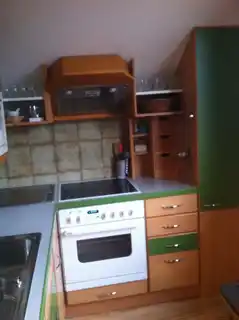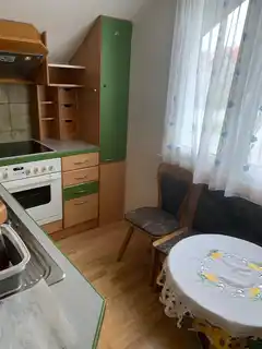 Die Waschmaschine im Keller darf benützt werden. Die Wohnung wird möbliert vermietet: Einbaukücke mit Sitzecke, Schlafzimmer mit Kasten und Echtholzbett, Holz-Wandverbau etc.