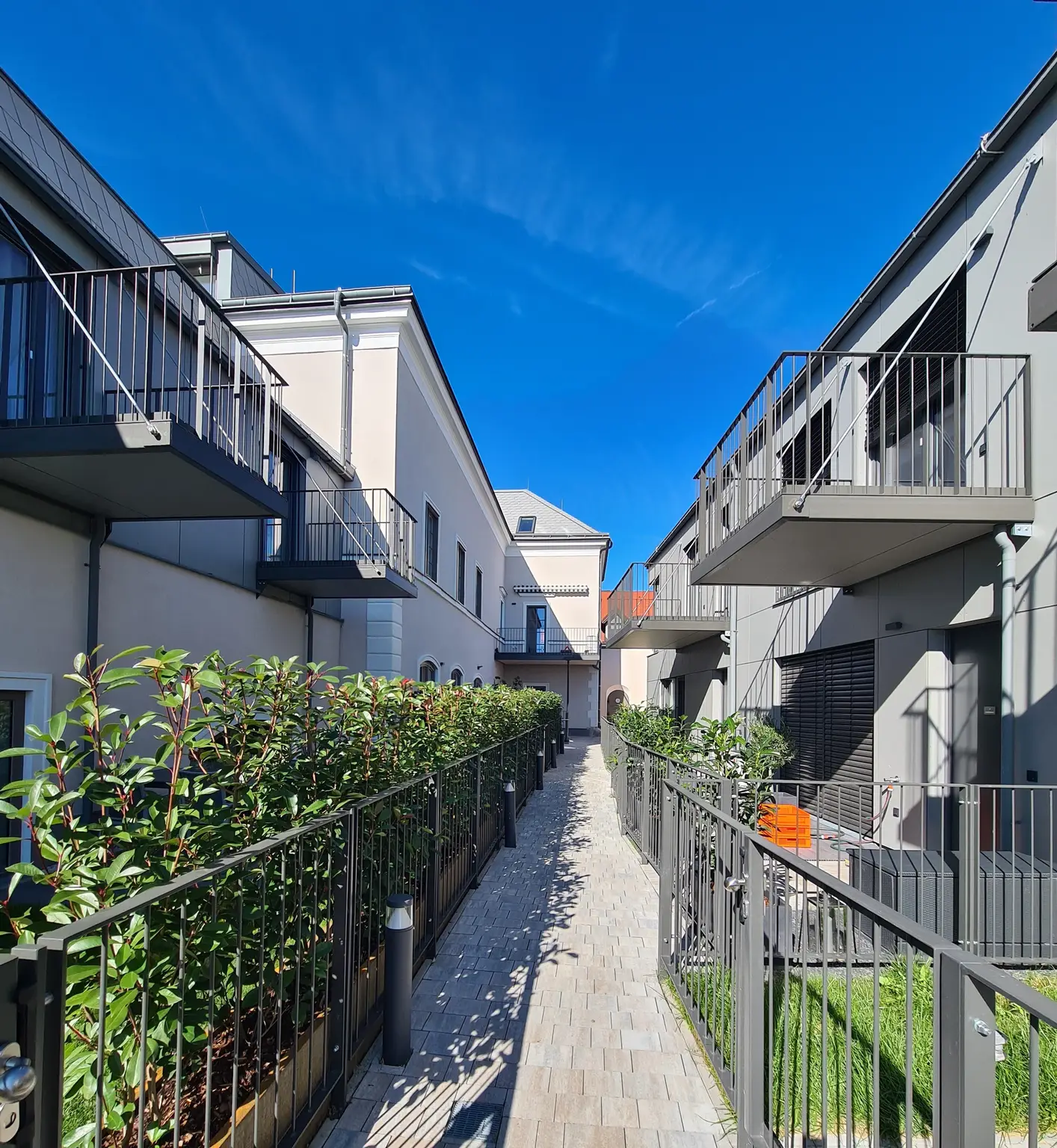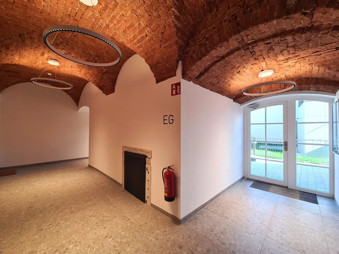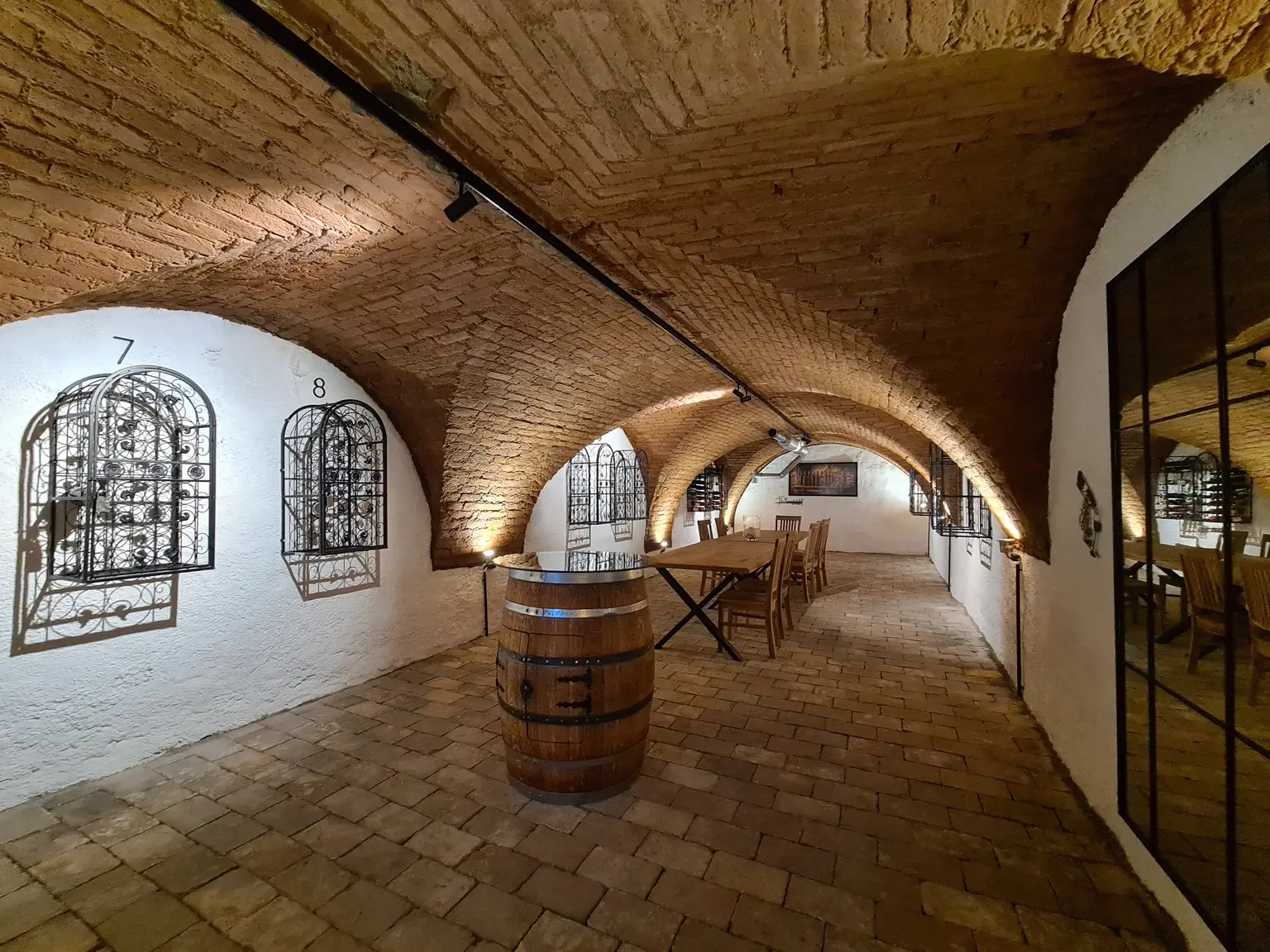 Die Anlage verfügt über eine Tiefgarage mit 10 PKW-Stellplätzen sowie ein ebenerdiges Geschäftslokal, das direkt von der Straße zugänglich ist. Das bestehende Kellergewölbe wurde ebenfalls aufwendig saniert und ist barrierefrei über den Aufzug erschlossen. Neben den PKW-Stellplätzen und Einlagerungsräumen steht den Bewohnern hier ein wunderschöner Gewölbekeller mit Verkostungsbereich zur Verfügung – ein außergewöhnliches Ausstattungselement, das dem umgebenden Weinbaugebiet nur gerecht wird.