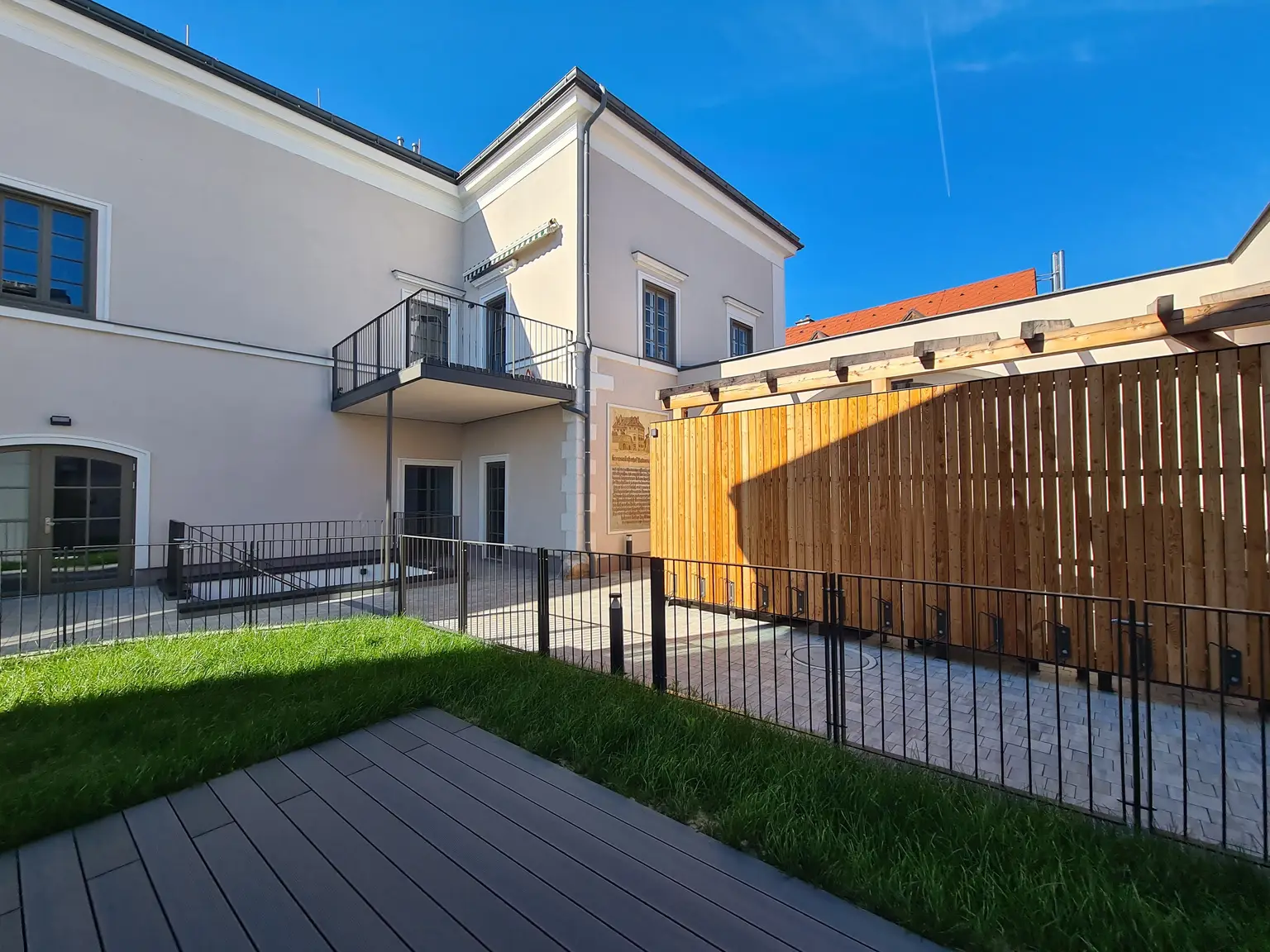 Der Kremsmünsterhof verbindet auf elegante Weise historische Bauteile mit zeitgemäßen Elementen. Der Anbau in Holzbauweise ist nicht nur durch den nachwachsenden Rohstoff Holz besonders nachhaltig, auch in der Nutzung besticht diese Bauweise durch hohe Energieeffizienz und optimales Raumklima. Die Wärmebereitstellung für Heizung und Warmwasser erfolgt für das gesamte Gebäude mittels zentraler Pellets-Heizung.