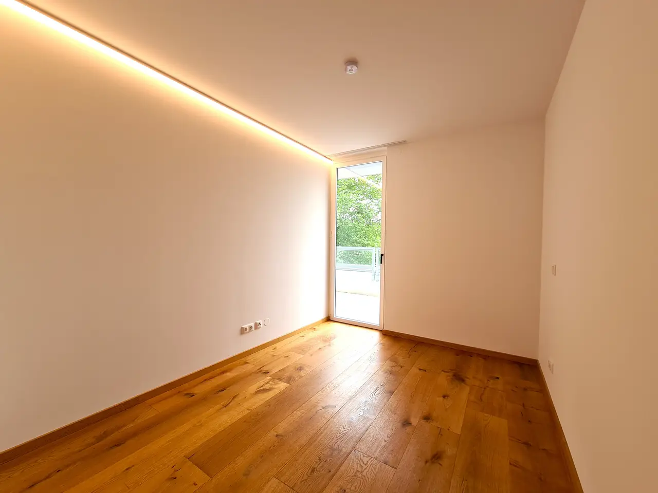 In Wohnung wurde ein hochwertiger Eichenboden verlegt und 3-fach verglaste Panoramafenster eingebaut.