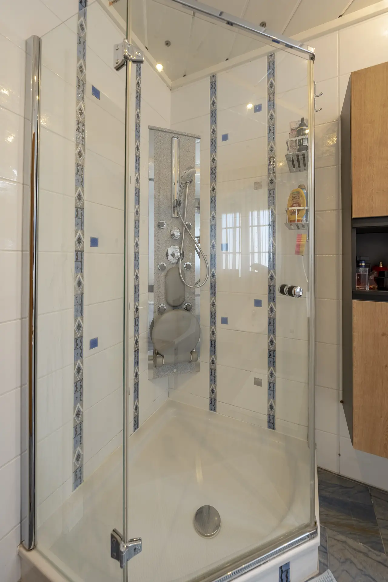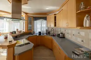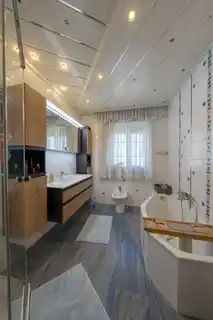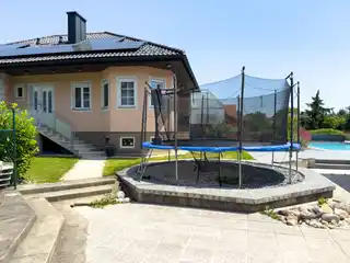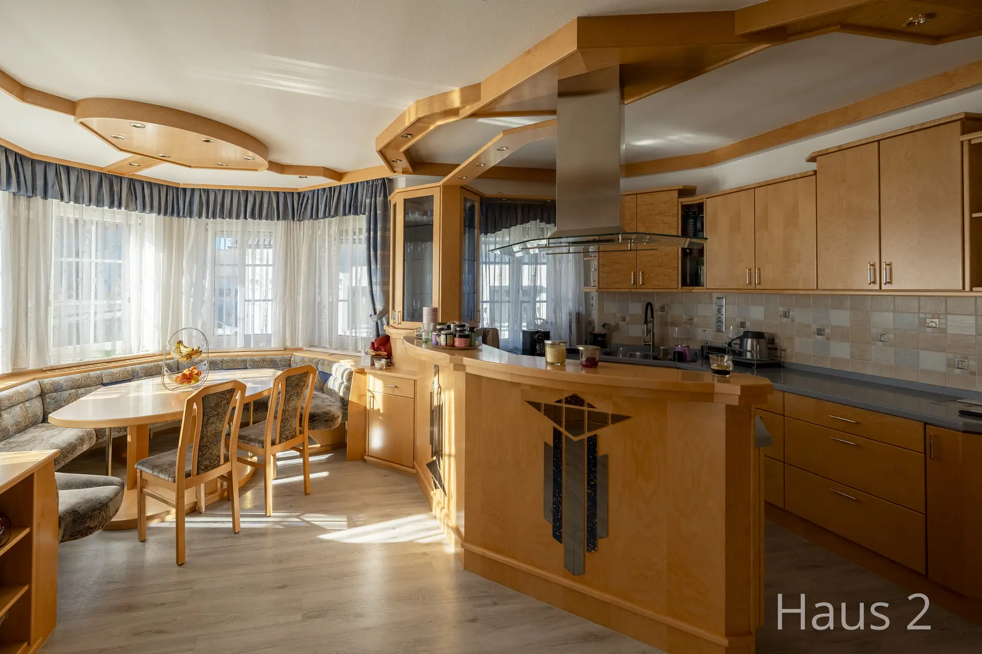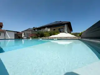 Einbauküche, Bad mit Fenster, Badewanne, Dusche, Kabel / Satelliten-TV, Swimmingpool, Luftwärmepumpe, Südwestbalkon / -terrasse, Außenliegender Sonnenschutz, Toilette, Walmdach, Massiv, Whirlpool, Bad mit WC