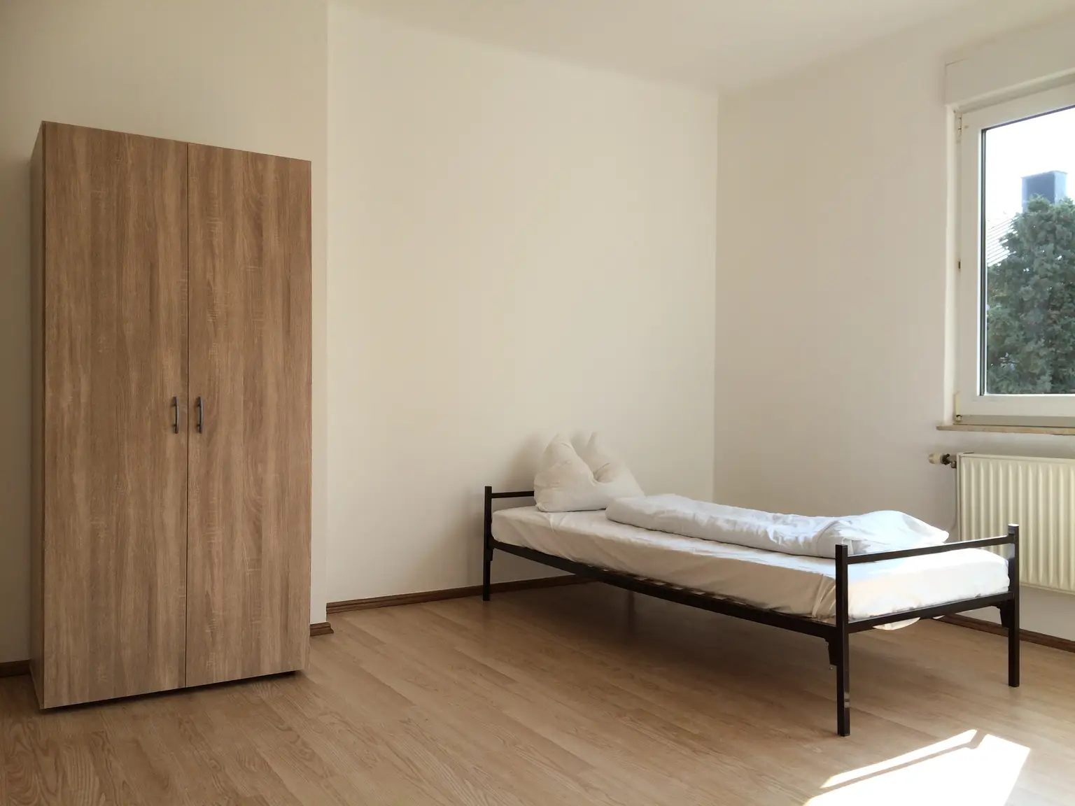 Das Zimmer ist ca. 18m² groß und wie folgt ausgestattet: 2 Betten mit Schränke, TV Sat Anschluss, Badezimmer mit Dusche und WC.