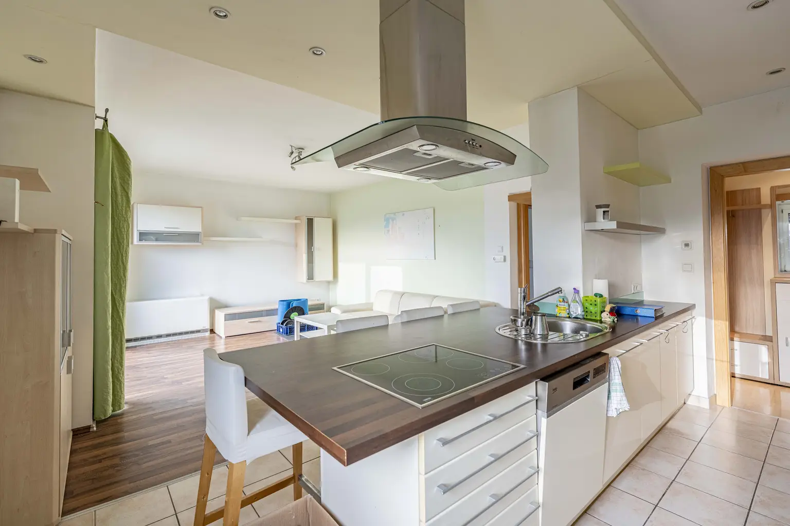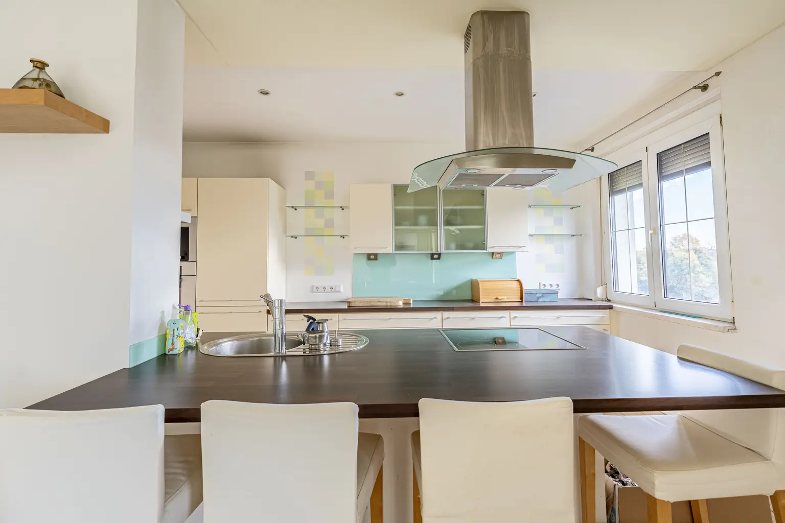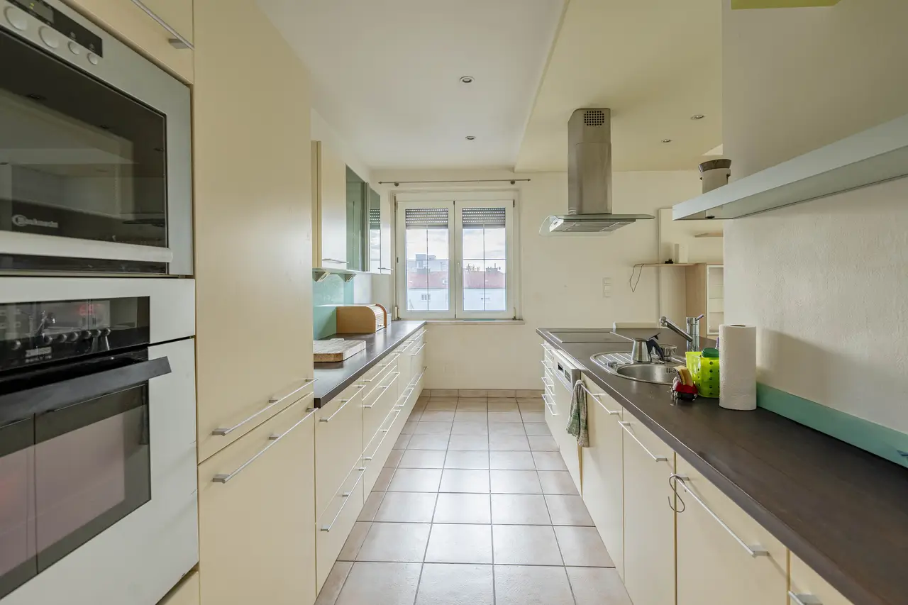Die offene Wohnküche ist modern ausgestattet und schafft eine angenehme Verbindung zwischen Kochen, Essen und Wohnen. Der gemütliche Wohnbereich bietet direkten Zugang auf die Loggia und lädt zum Entspannen ein.