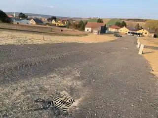 An der Grundstücksgrenze befinden sich: Glasfaser, Wasser, Strom, Kanal.