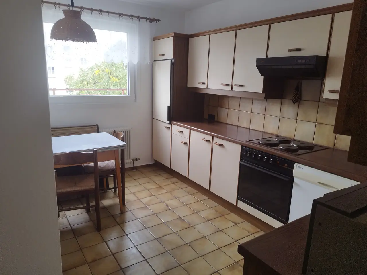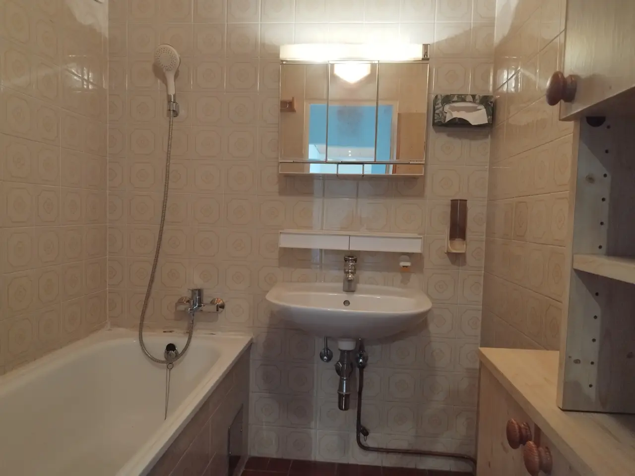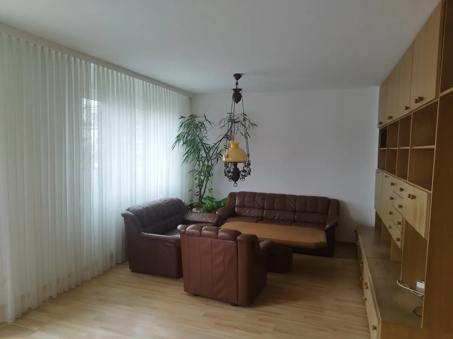 Die Wohnung verfügt über Laminat-, Fliesen- und Teppichböden. Küche und Möblierung stammen aus früheren Jahren und sind funktional, zeigen jedoch altersbedingte Gebrauchsspuren; eine moderne Erneuerung empfiehlt sich, bietet aber großes Potenzial zur Wertsteigerung und individuellen Gestaltung.