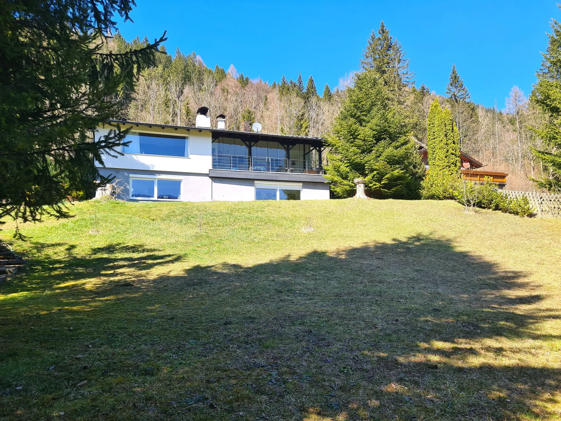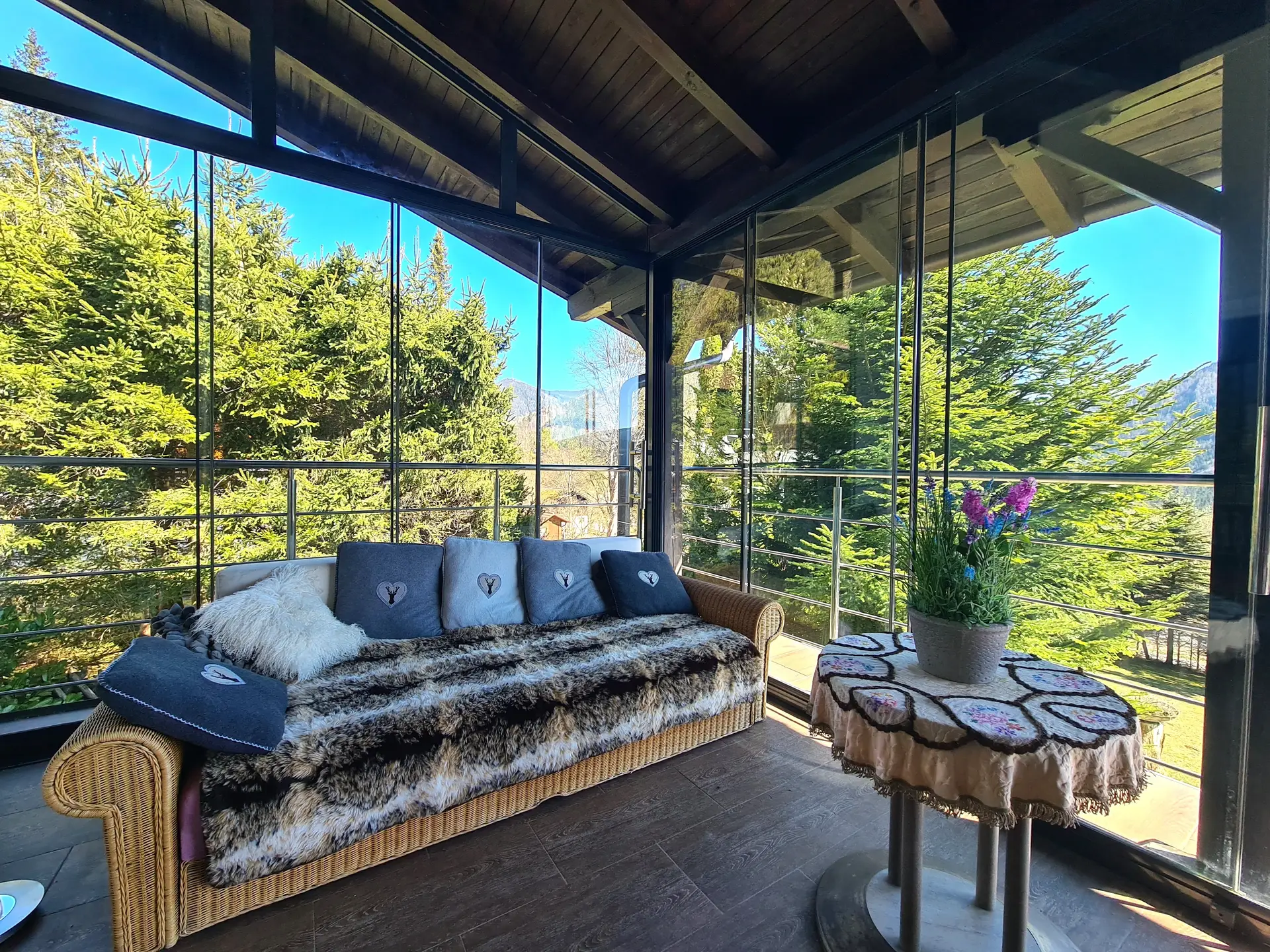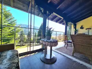 Die zwei großzügigen Terrassen, davon eine mit Sommerverglasung laden dazu ein, die frische Bergluft zu genießen und entspannte Stunden im Freien zu verbringen. Ob beim Frühstück in der Morgensonne oder beim Grillabend mit Freunden – hier wird jeder Moment zum Erlebnis. Der traumhafte Ausblick auf die Berge und die grüne Umgebung schafft eine unvergleichliche Kulisse und lässt Sie den Alltag schnell vergessen.