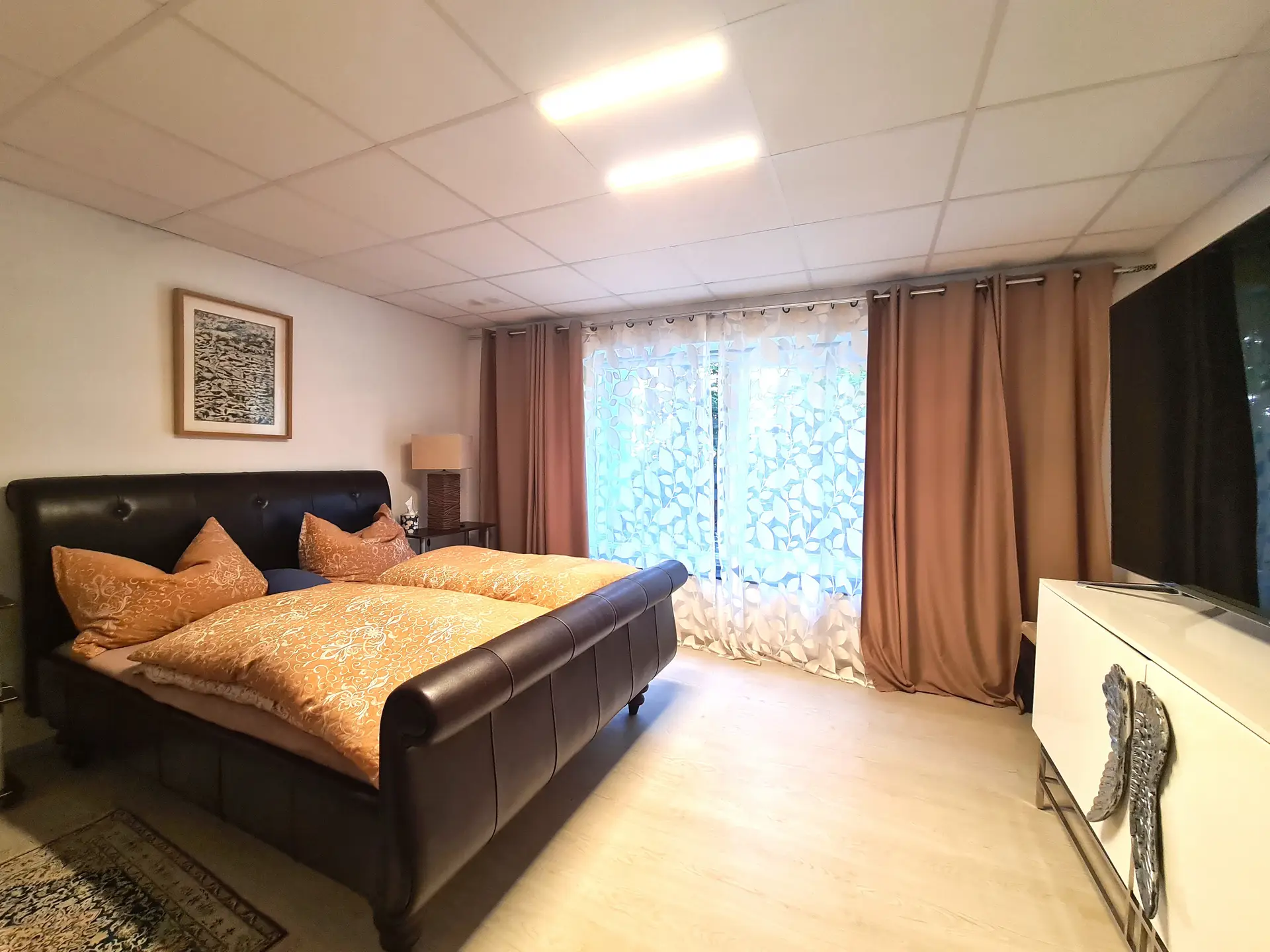 Im Untergeschoss erwarten Sie neben einem sehr großen Wohnbereich mit Panoramafenster und einem offenen Kamin noch 2 Schlafzimmer, sowie eine Bibliothek und ein Wellnessbereich mit großzügigem Badezimmer und Sauna.